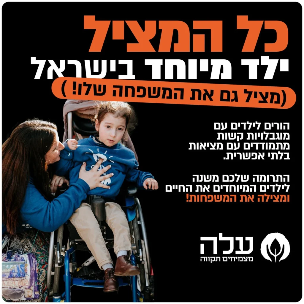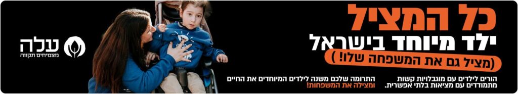 שימו לב! באם הינכם תורמים בהעברה בנקאית או בשיק, יש לכתוב בשם המוטב: עלה עזר לילד המיוחד.